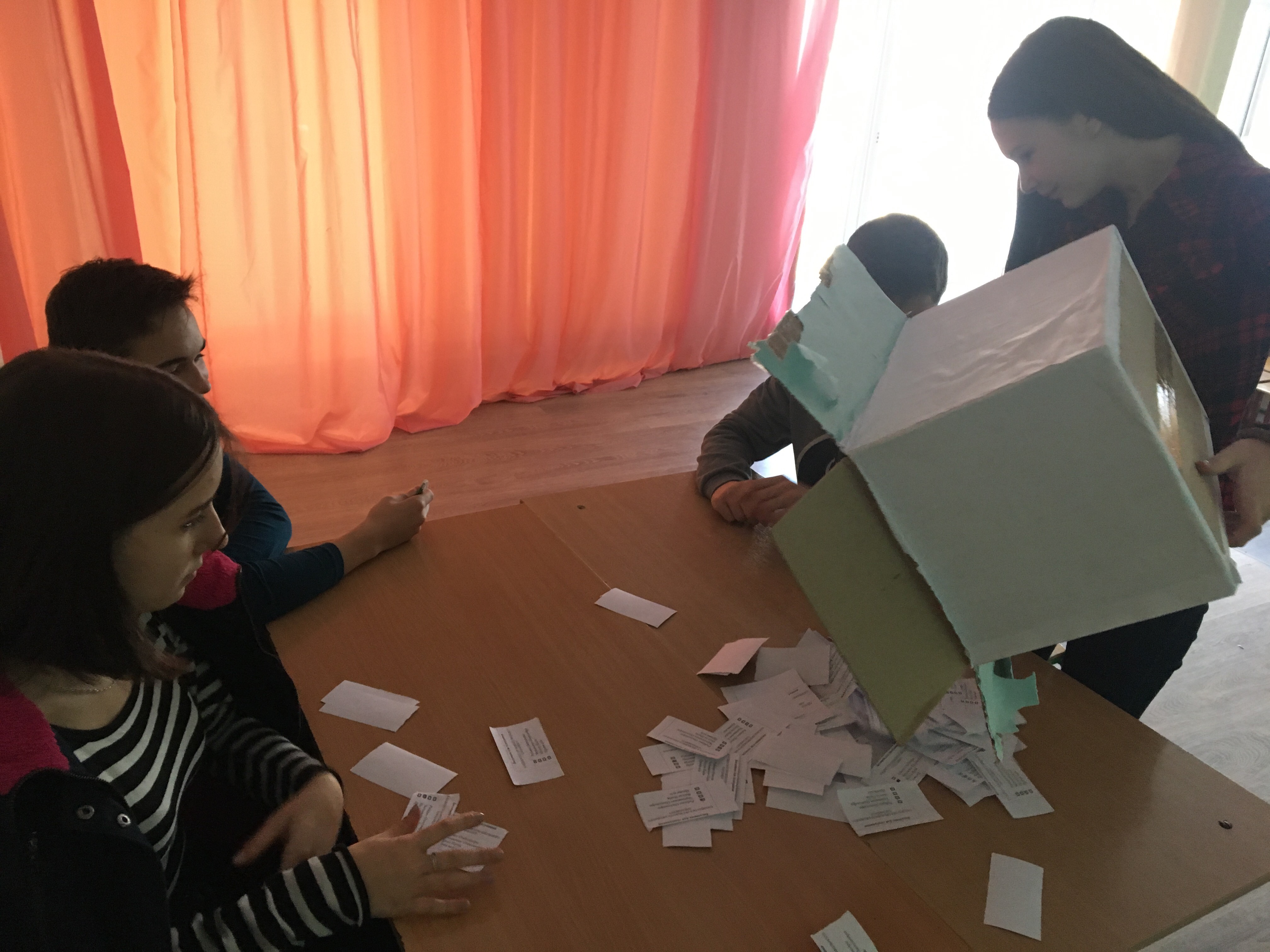 Для проведення виборів було обрано лічильну комісію, до якої увійшли учні 9-го класу: голова Коваль Кирило, заступник голови Біленко Ілля, члени комісії Хомченко Анна, Лоза Вадим, секретар комісії Раднюк Валерія. Комісія працювала на перервах протягом дня. Учні 5-11-их класів мали можливість проголосувати за свого кандидата, як на справжніх виборах.